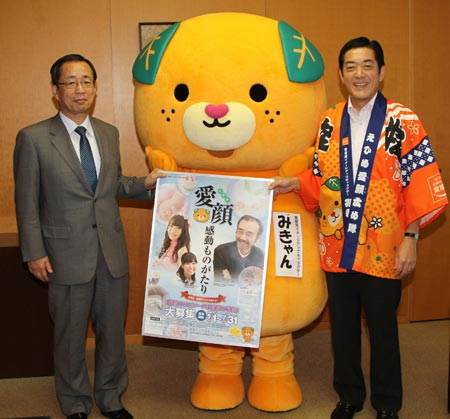 クールビズ期間を生かして、知多市の若手職員らが市公認キャラクター「梅子」のイラスト入りポロシャツを身に着け、市と梅子のPRに励んでいる。