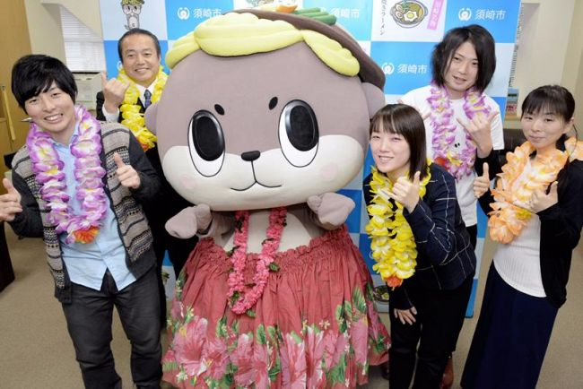 吉田町にある小山城をイメージした帽子をかぶり、町の特産品のシラスやレタスを