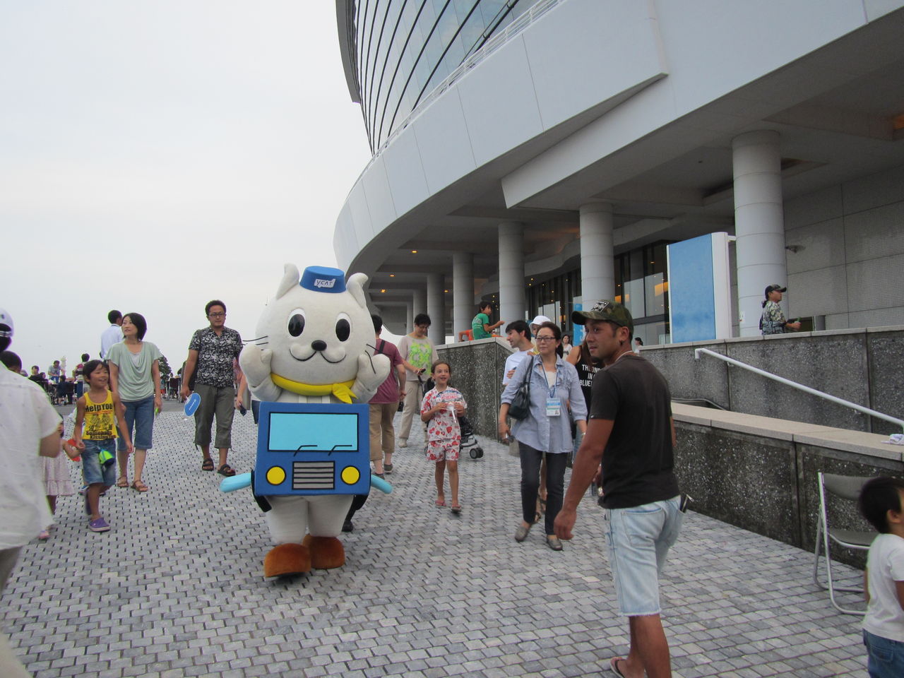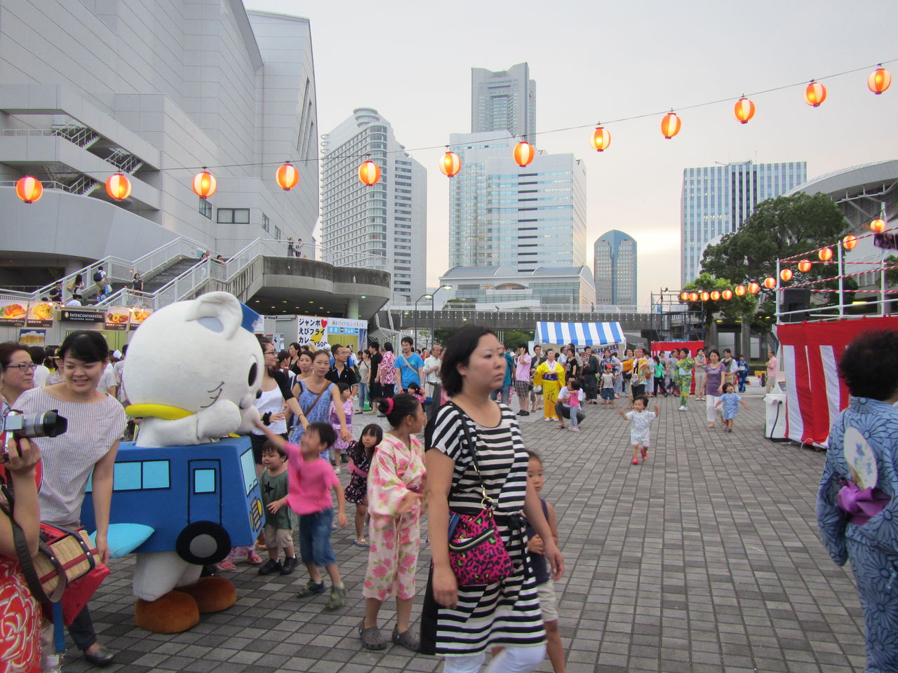 2013年8月16日(金) みなとみらい盆踊りにY-CATのキャラクター『キャティ』が登場。子供達と一緒に盆踊りを踊ったり・記念撮影をしたり人気者でした。上の写真はこっちに向かってポーズしてくれました!明日は西区のキャラクター『にしまろちゃん』が登場予定です!