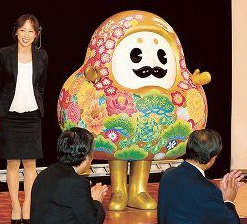 STEP21県民推進会議では、石川県のマスコットキャラクター(ゆるキャラ)「ひゃくまんさん」の着ぐるみがお披露目された。登場したひゃくまんさんは、手足を引っ込め、左右に体を揺らす「得意技」の「七転び八起き」を披露した。着ぐるみの素材には、県が次世代産業として産地化を図る炭素繊維複合材料を使った。身長175センチ、横幅130センチで、背中には「石川県」の文字が書かれている。フリーアナウンサーの茂木久美子さんが、言葉を話さないひゃくまんさんの気持ちを代弁していく。