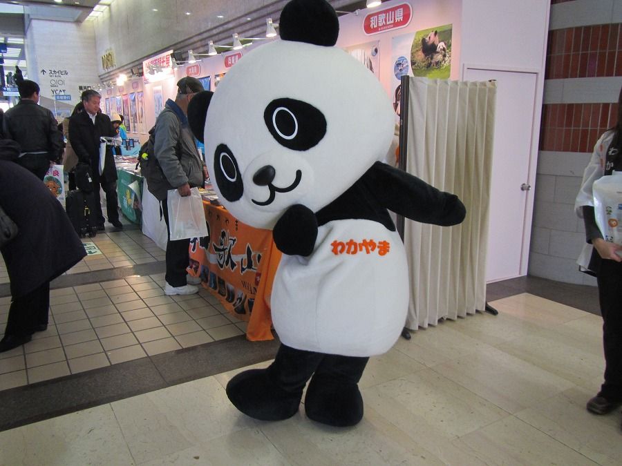 和歌山県のPRタイムが終わったばかりだったようで、会場には和歌山観光PRシンボルキャラクター「わかぱん」がお客さんと触れ合ったり、写真撮影に応じたりしていました。