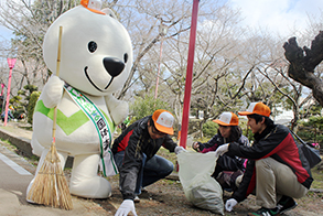 公募の300人ときいちゃんらお城清掃