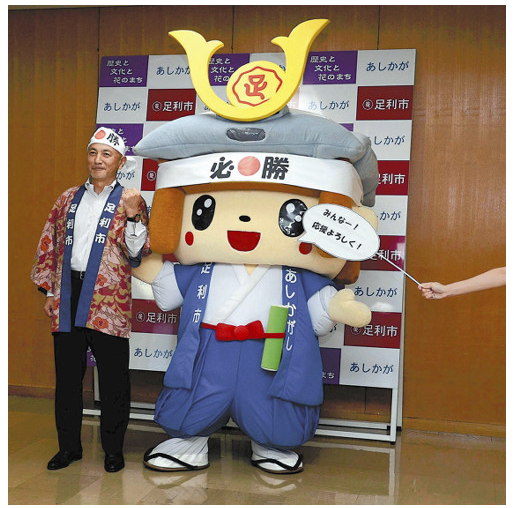 足利市のイメージキャラクター「たかうじ君」が20日、市役所で記者会見し、9月に投票が始まる「ゆるキャラグランプリ2014」への出馬を表明した・・・