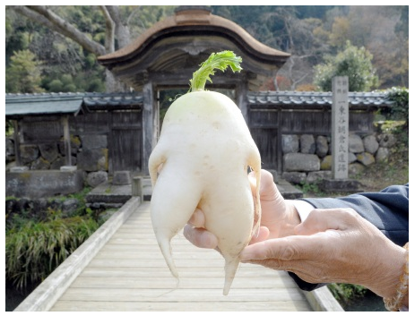 梨汁ならぬ、おろし汁ブシャー! 福井・一乗谷でふなっしー風大根