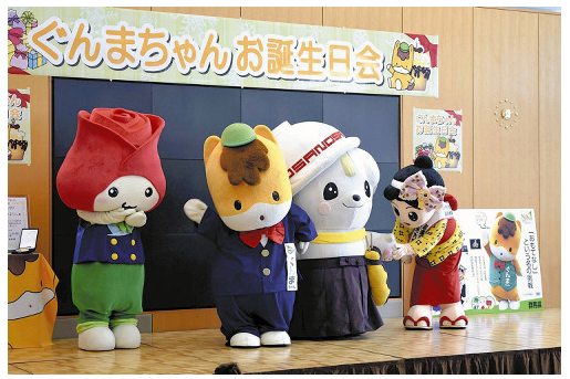 昨年11月の「ゆるキャラグランプリ2014」でグランプリとなった県のマスコット・ぐんまちゃんの誕生日会が22日、県庁で開かれ、約1000人のファンが参加した。2013年グランプリの「さのまる」(栃木県佐野市)ら、ゆるキャラ仲間たちも祝福に駆けつけた。・・・