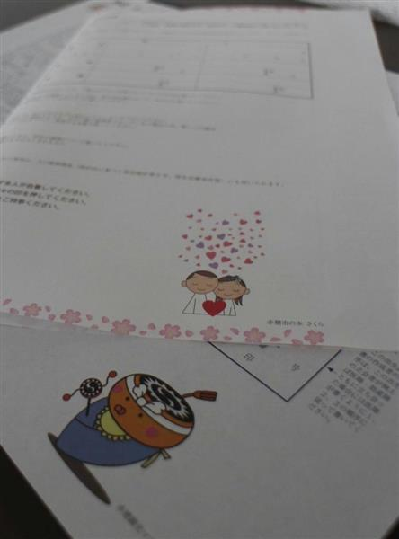 まちへの愛着を持ってもらおうと、赤穂市は今月から、市独自デザインの「出生届」と「婚姻届」の配布を始めた。出生届には市の観光マスコットキャラクター「陣たくん」をプリントし、婚姻届には市のシンボルになっている「サクラ」がデザインされている。・・・
