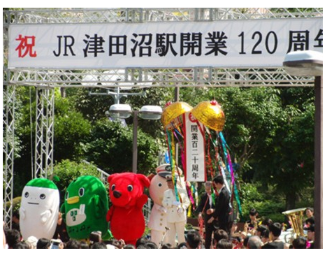 津田沼駅開業120周年でご当地キャラも祝福 記念グッズに長蛇の列