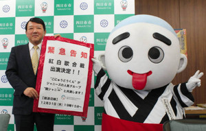 四日市市のマスコットキャラクター「こにゅうどうくん」が、31日のNHK紅白歌合戦に出演する。人気グループ「関ジャニ∞(エイト)」の歌に合わせて踊る全国のご当地キャラクター6体に選ばれ、田中俊行市長は「存在感を発揮してほしい」と期待している。・・・