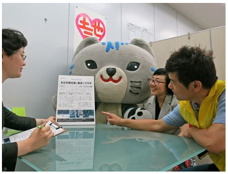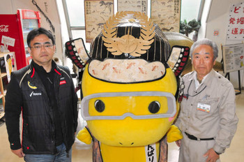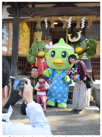 登校中の女子高生に駆け寄り、ハイタッチ。ゆるキャラグランプリ(GP)で百七十位になったことへの感謝を込め、来庁者におじぎする・・・記事を読む出典:中日新聞