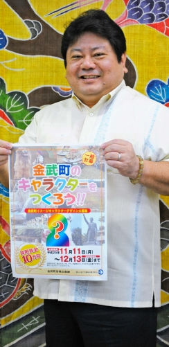 金武町は自然や文化、特産品の魅力を発信するイメージキャラクターのデザインを募集している。選考委員会で作品を数点に絞り、町民による総選挙で最優秀賞を決める。賞金10万円。誰でも応募可能で、締め切りは12月13日。