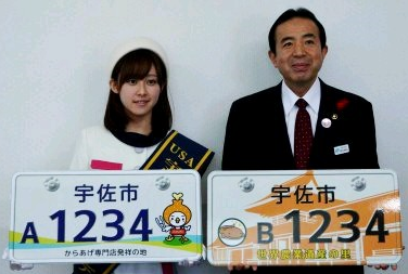 宇佐市は、市の観光PRキャラクター「うさからくん」などをあしらった、50CC以下のバイク用の「ご当地ナンバープレート」を、来年1月6日から希望者に無料で交付する。新規のほか、旧ナンバープレートとの交換にも応じる。市によると、ご当地ナンバー交付は県内では初めて。デザインは、うさからくんと「からあげ専門店発祥の地」と書かれたものと、宇佐神宮南中楼門と特別天然記念物のオオサンショウウオが描かれ「世界農業遺産の里」と書かれたものの2種類。大きさは通常のナンバーと同じ縦10センチ、横20センチ。