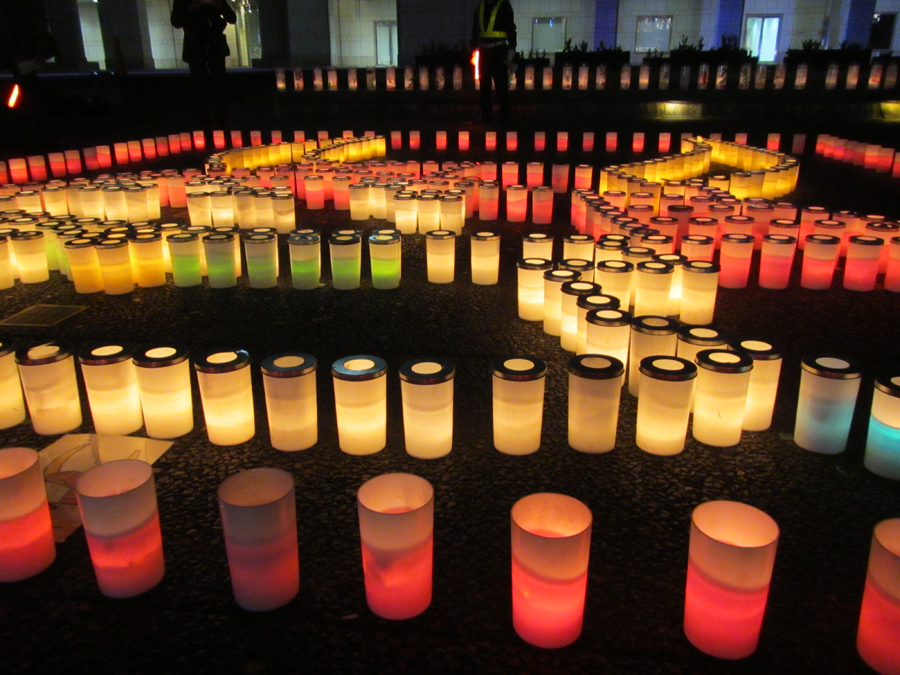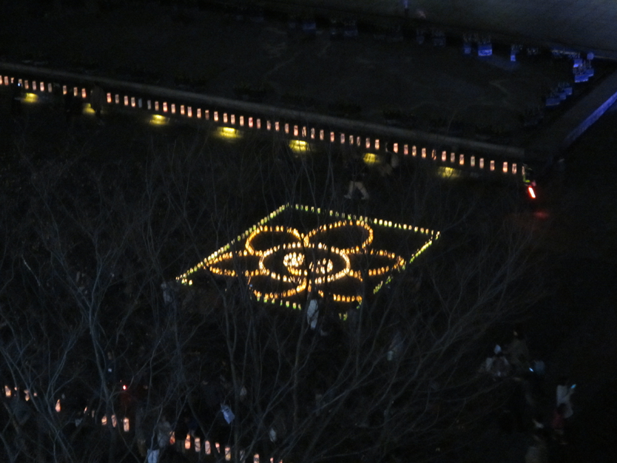 目の前だと少し近いので、会場のお向かいにある商業施設「マークイズみなとみらい」屋上のフォトスポットに上がってキャンドルアートを撮影してみました。