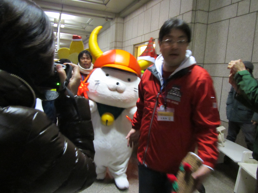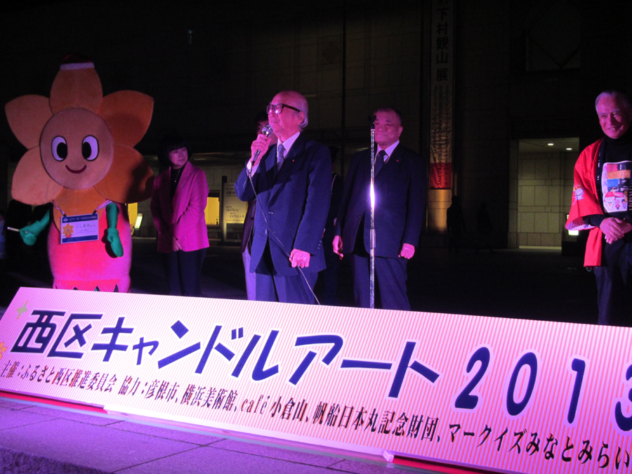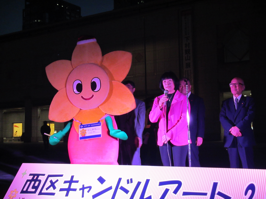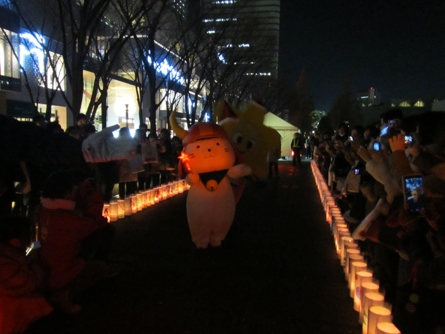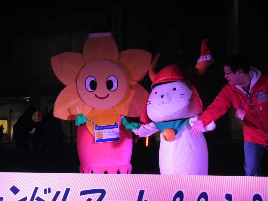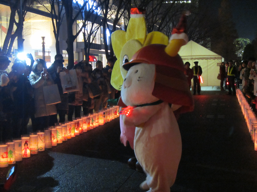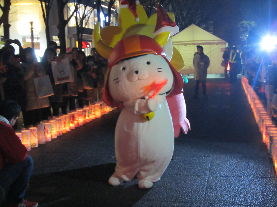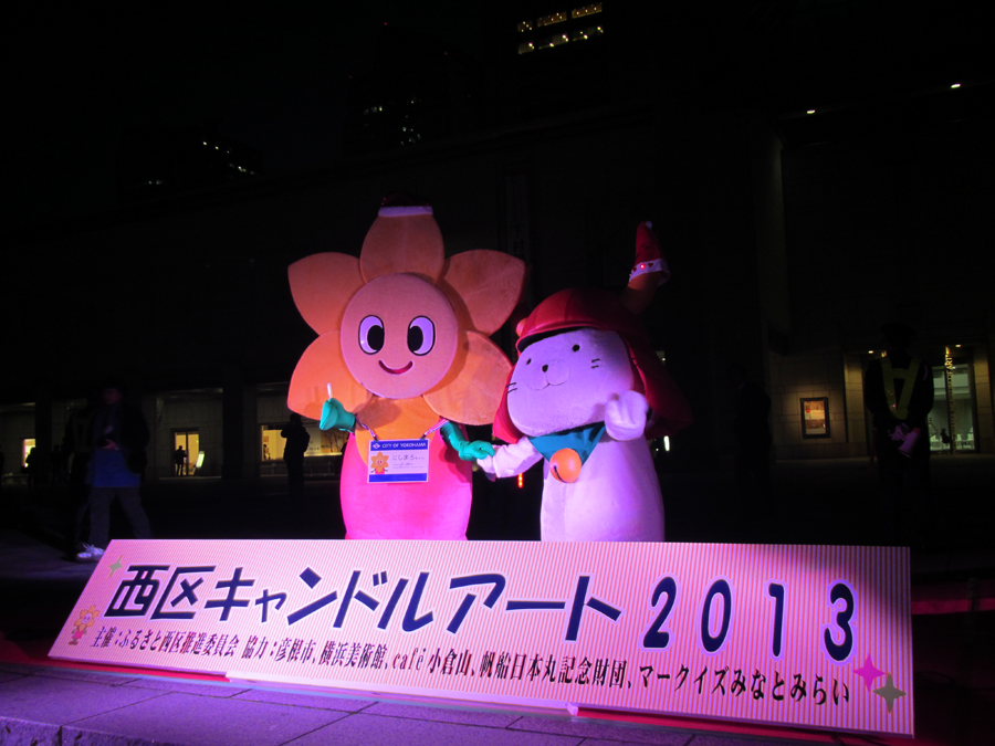 キャンドルアートは横浜市西区で毎年12月に開催されているイベントのようで、交流都市である滋賀県彦根市から彦根市キャラクターの「ひこにゃん」もやって来ているそうです。