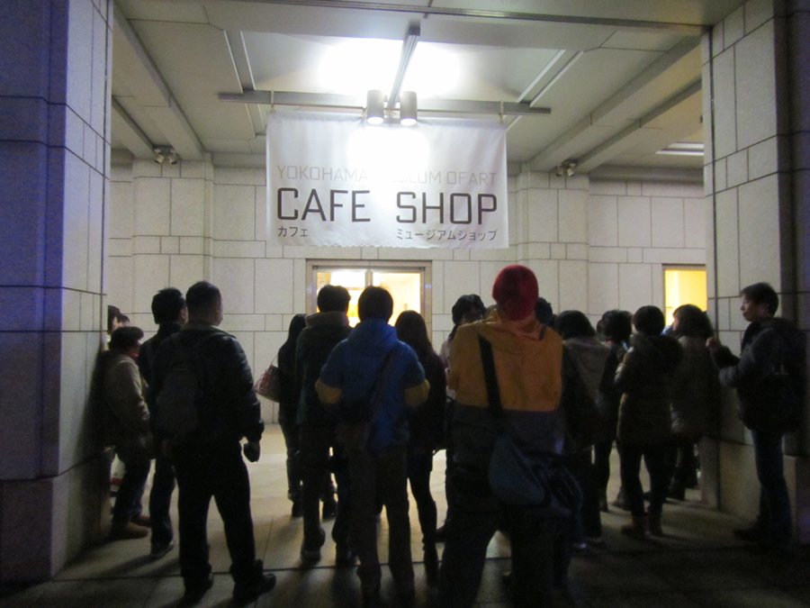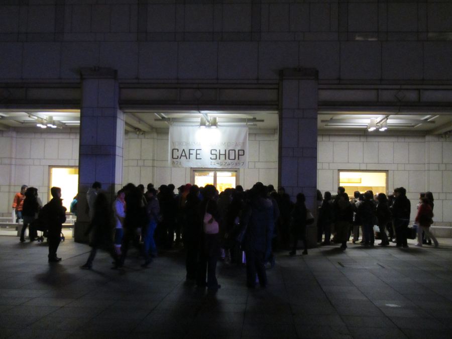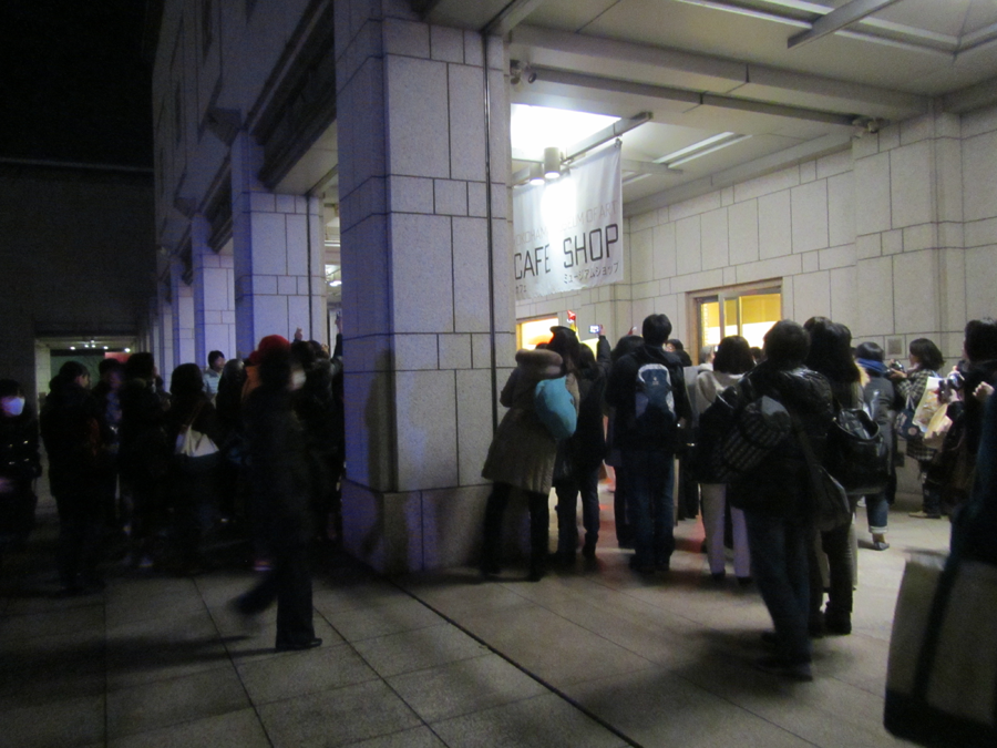 しばらく会場周辺のみなとみらいを散策した後に18時20分頃に会場に戻ると、キャラクターさん達が出てくるカフェの扉の前にはすでに出待ちのお客さんがたくさんいました。