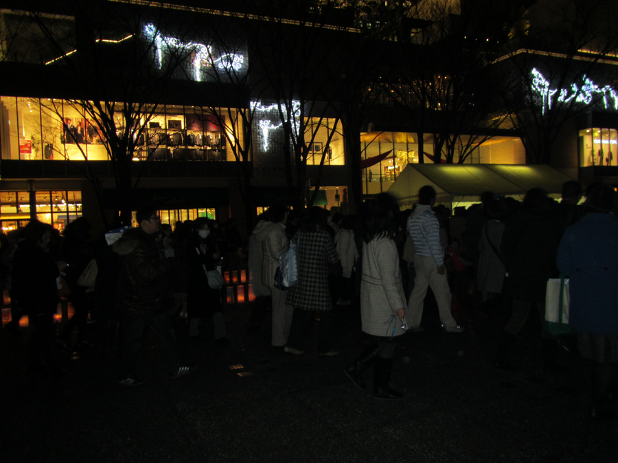 上の写真の奥に写る三角のテントの奥にも同じようなキャンドルの通路があり、次はそちらをお散歩するために移動が始まりました。